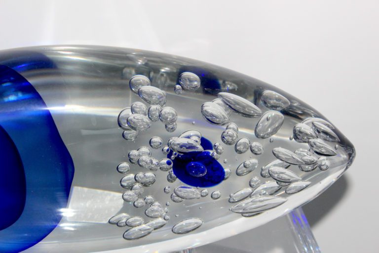 In these works of glass the artistic genius is contained in the bold shapes, in the skilful technique, in the “staccate” and in the small air bubbles that are inevitably synonymous with craftsmanship.